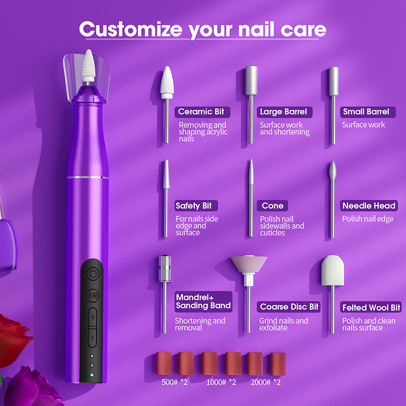 नेल ड्रिल मशीन में 6 स्टेनलेस स्टील नेल ड्रिल बिट, 1 सिरेमिक ड्रिल बिट और 36 इंटरचेंजेबल सैंडिंग स्ट्रिप्स शामिल हैं। मैनीक्योर पेडीक्योर किट का उपयोग मैनीक्योर, पेडीक्योर, पॉलिशिंग, शेपिंग, क्यूटिकल ग्राइंडिंग, ऐक्रेलिक/जेल नेल रिमूवल या नेल ब्यूटी के लिए किया जा सकता है। एक्सेसरीज के साथ पूरा और उपयोग में आसान, नेल आर्ट के शुरुआती लोगों के लिए एकदम सही!
