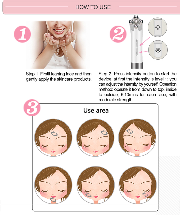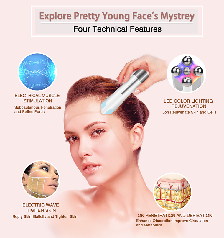 हाई-फ़्रीक्वेंसी फेस मसाज - क्लींजिंग, पेनिट्रेशन, लिफ्टिंग और आईकेयर मोड पर, हाई फ़्रीक्वेंसी वाइब्रेटिंग सेंसेशन होने से सेल व्यवहार्यता को उत्तेजित करने और रक्त परिसंचरण को बढ़ावा देने में मदद मिलती है। इसलिए यह वास्तव में एक फेस मसाजर भी है।