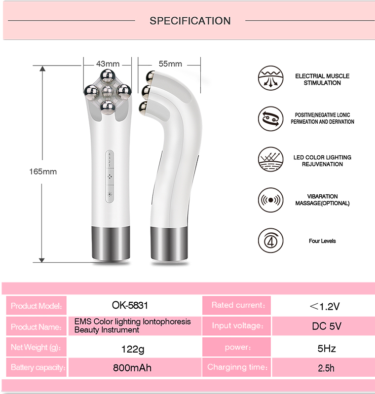 लाभ क्या हैं? - सौंदर्य मशीन एक बहु-कार्यात्मक एंटी-एजिंग डिवाइस है जिसमें लाल/नीली प्रकाश चिकित्सा के साथ रेडियो फ्रीक्वेंसी (आरएफ) तकनीक, रेखाओं और झुर्रियों को कम करने के लिए ईएमएस, त्वचा में प्रवेश और अवशोषण क्षमता में सुधार आदि शामिल हैं।