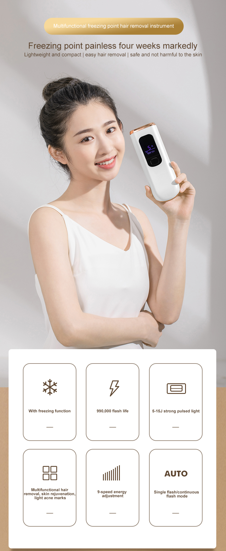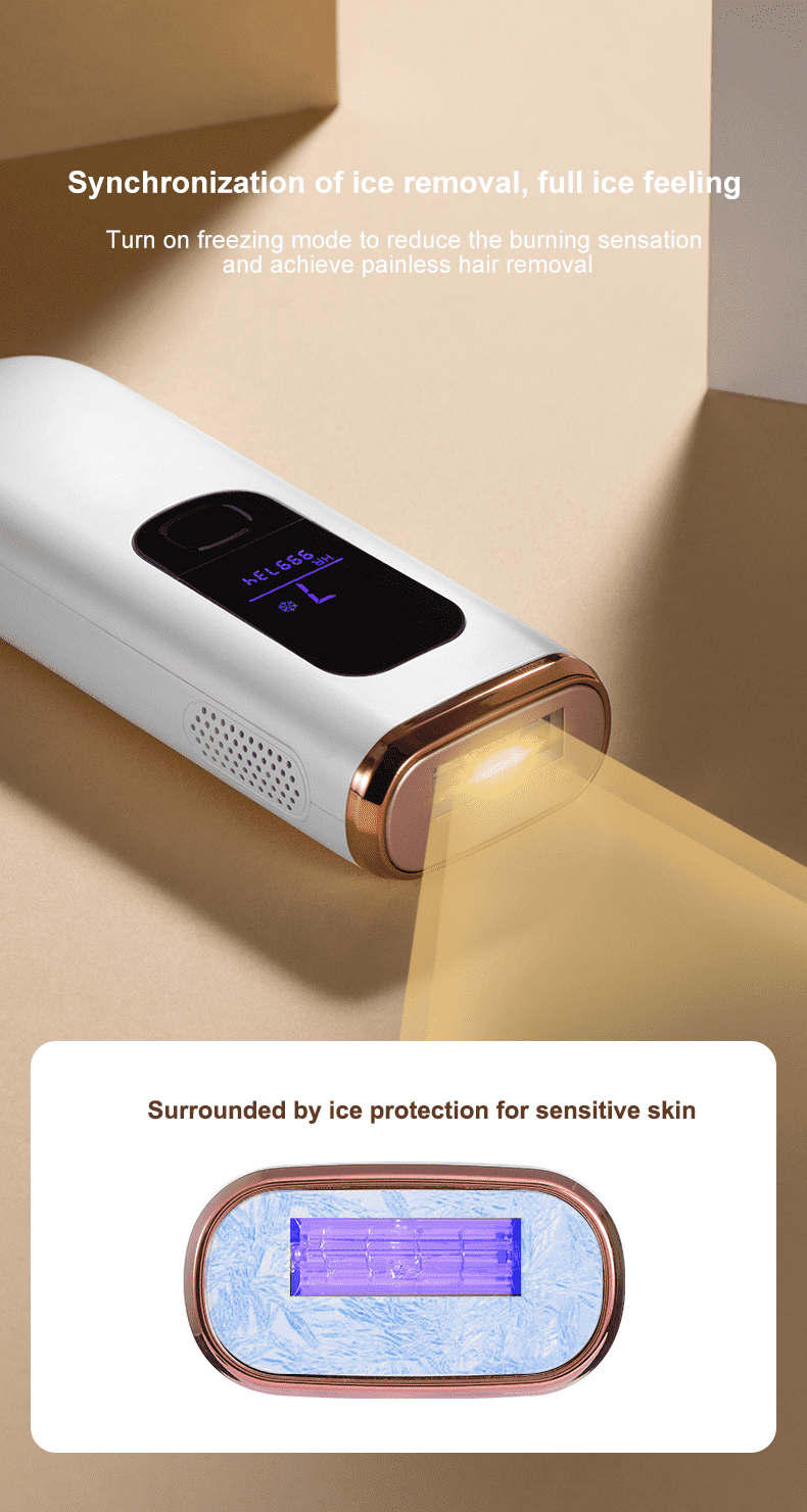 - घर पर ही रेशमी-चिकने परिणाम पाएँ। यह आपकी त्वचा के संपर्क बिंदु पर तापमान को 158°F से 67°F तक कम करने के लिए क्लिनिकल-ग्रेड सफायर आइस-टच तकनीक को अपनाता है।