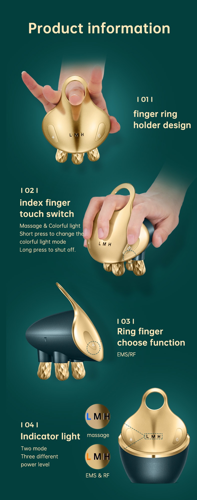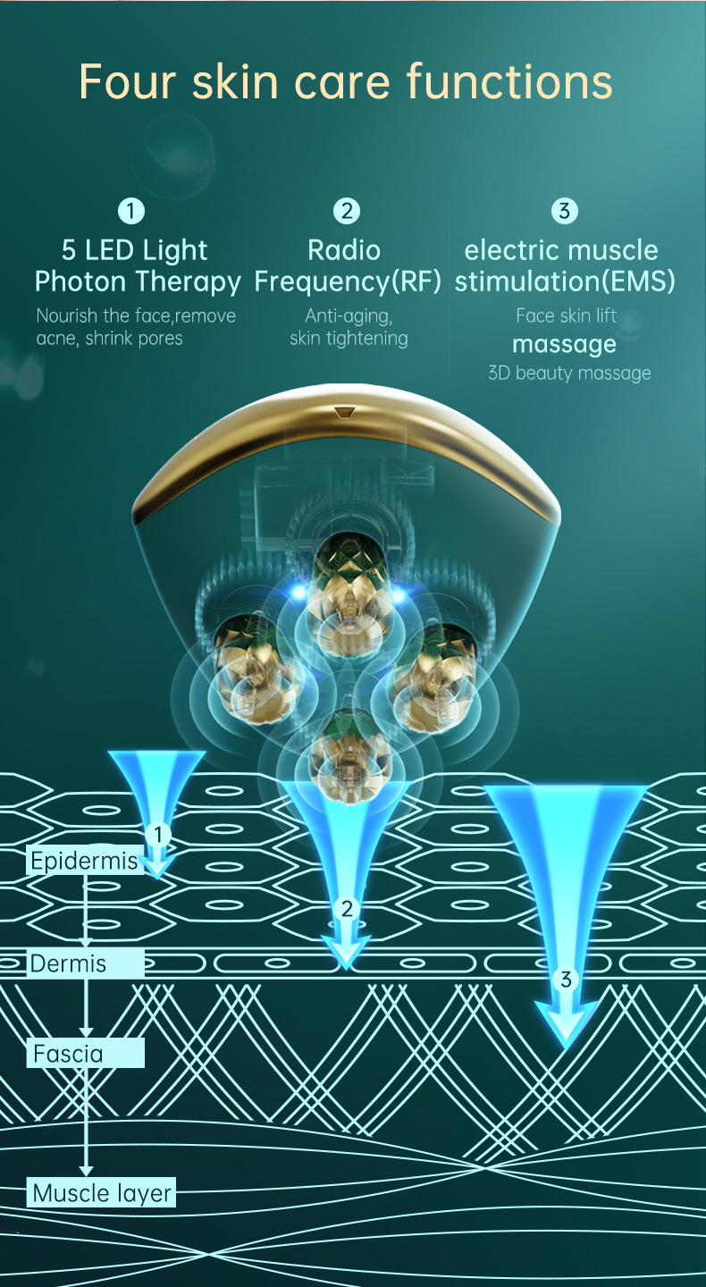 2. मालिश+ईएमएस+आरएफ बहुक्रियाशील, 3 गति और तीव्रता समायोज्य