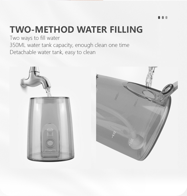 इस वॉटर डेंटल फ़्लॉसर में एक उन्नत 350ml पानी की टंकी है, जो अन्य पुराने मॉडलों की क्षमता से दोगुनी है, जिससे बार-बार पानी भरने की ज़रूरत नहीं पड़ती और आपकी मौखिक सफ़ाई अधिक सुविधाजनक और कुशल हो जाती है