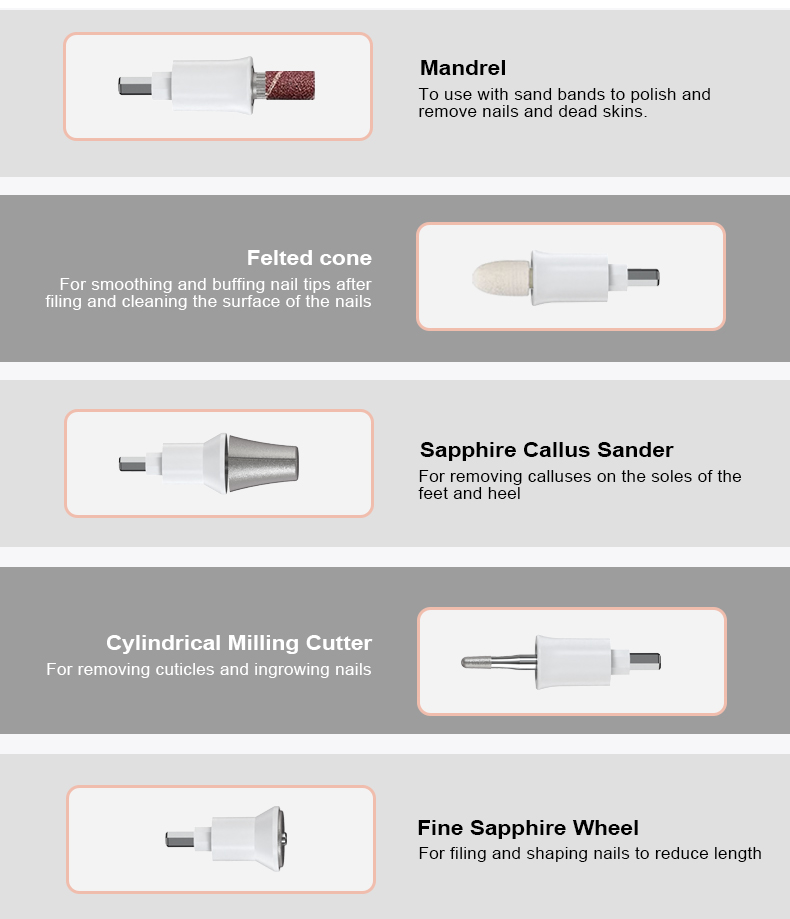 - कॉर्डलेस और रिचार्जेबल: कॉर्डलेस इलेक्ट्रिक नेल ड्रिल यात्रा के लिए एकदम सही है और 10 घंटे तक काम करने का शानदार समय देती है। पैरों और आपकी सभी मैनीक्योर-पेडीक्योर जरूरतों के लिए एक सुविधाजनक पेडीक्योर टूल। हमारी नेल फाइल प्राकृतिक, ऐक्रेलिक, जेल और डिप पाउडर नाखूनों के लिए उपयुक्त है
