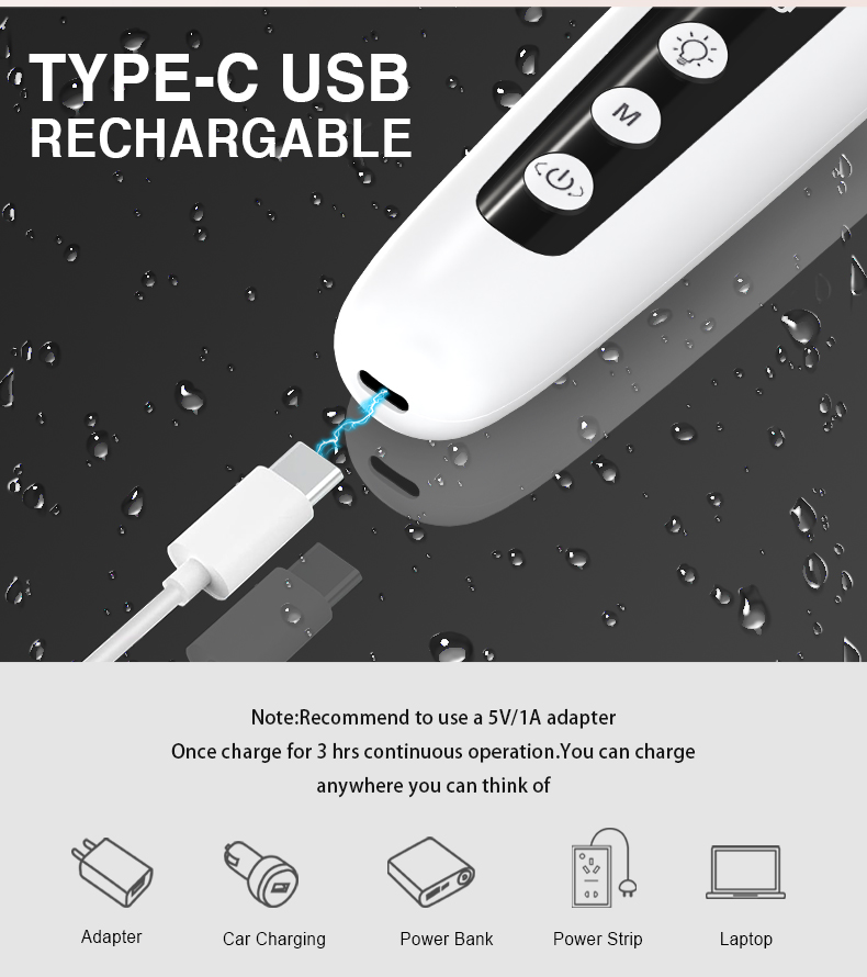 4:DC 5V 1A टाइप-सी चार्जिंग समय: 3-4 घंटे