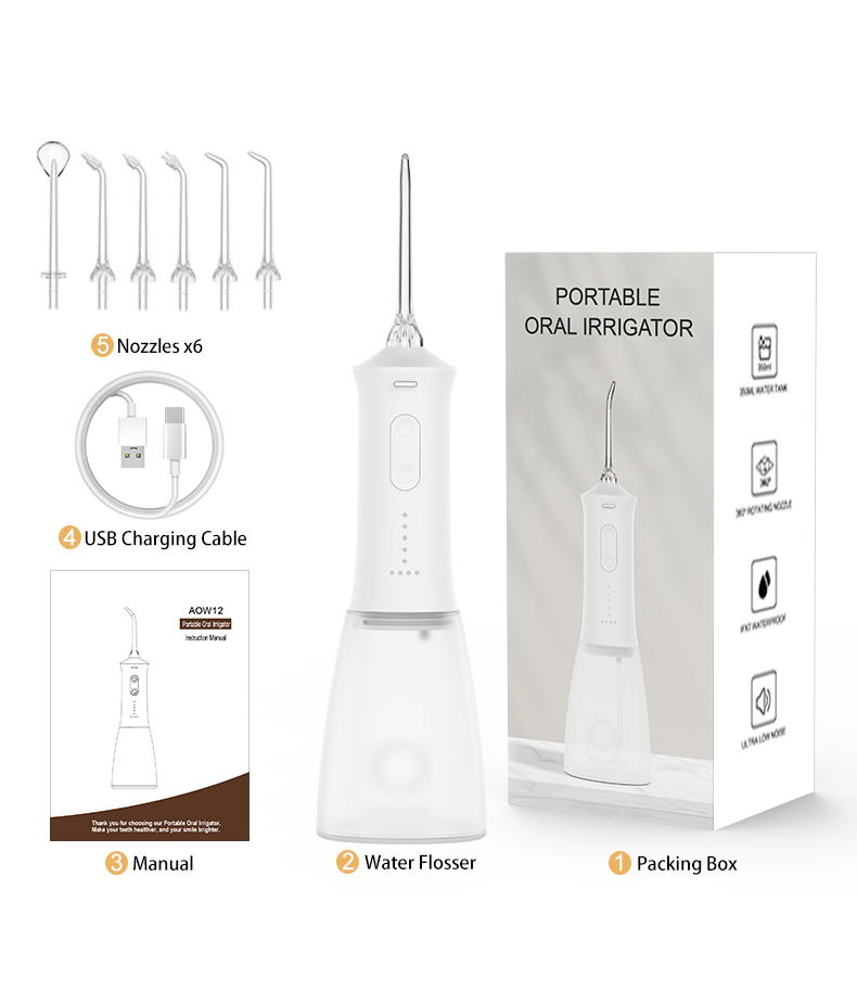 पैकेज: 1 पीसी पानी फ्लॉसर बॉडी + 5 पीसी टिप्स + 1 पीसी यूएसबी केबल + 1 पीसी उपयोगकर्ता मैनुअल + 1 पीसी उपहार बॉक्स।